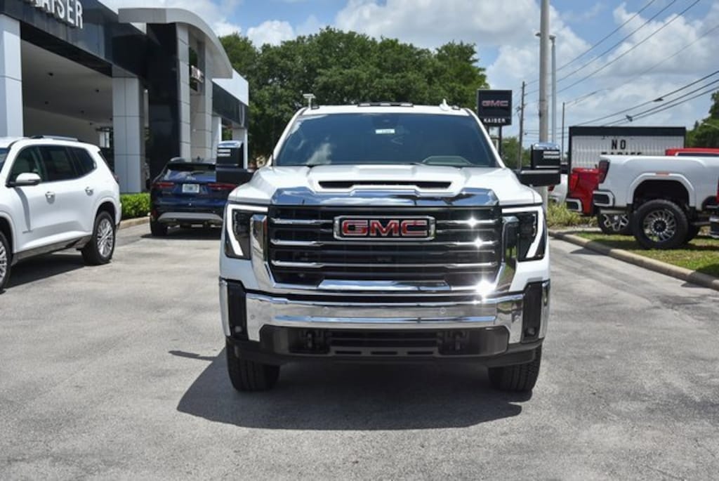 This 2025 GMC Sierra 3500HD in Summit White is equipped with: 10-Speed Automatic, 4WD, Dark Walnut/Slate Leather. SLT 4WD 10-Speed Automatic Duramax 6.6L V8 Turbodiesel