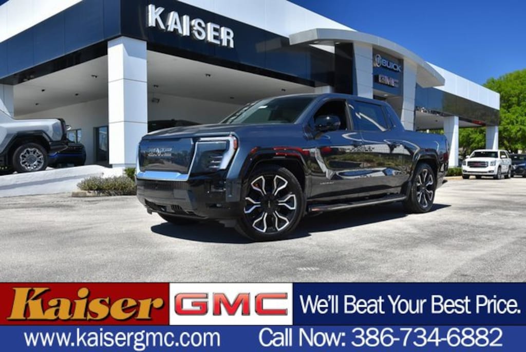 This 2025 GMC Sierra EV in Deep Ocean Metallic is equipped with: Denali AWD 1-Speed Automatic Electric