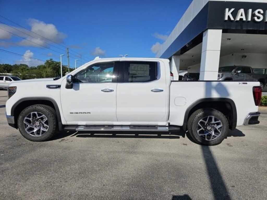 This 2026 GMC Sierra 1500 in Summit White is equipped with: 10-Speed Automatic, 4WD, Leather. SLT 4WD 10-Speed Automatic 3.0L I6